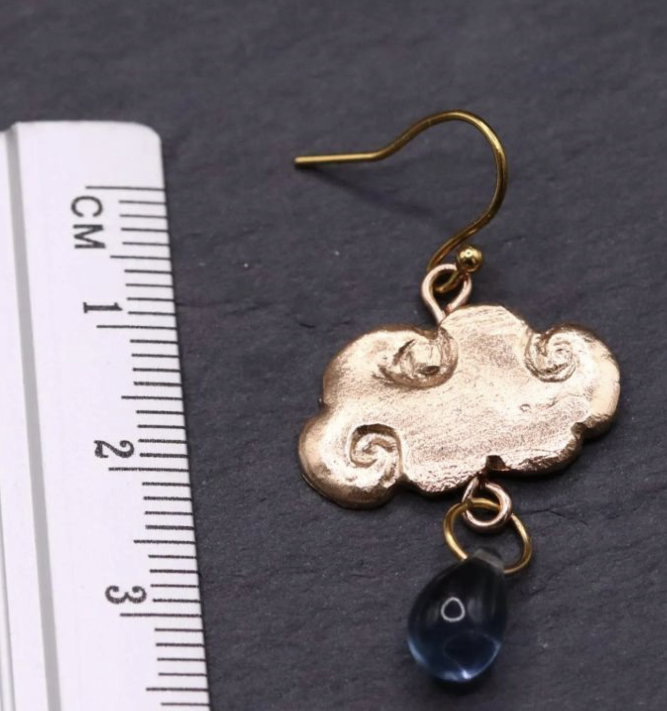 Wolkenohrringe von ©Charmed Creations “Diese handgefertigten Wolkenohrringe mit blauem Regentropfen sind ein wahrhaft einzigartiges Schmuckstück. Die Wolke besteht aus reiner Bronze, während der Ohrring aus vergoldetem Edelstahl gefertigt ist. Die unterschiedlichen Materialien führen zu leichten Farbunterschieden zwischen Ohrhaken und Anhänger, was den Ohrringen einen besonderen Kontrast verleiht und sie zu einem echten Blickfang macht.”