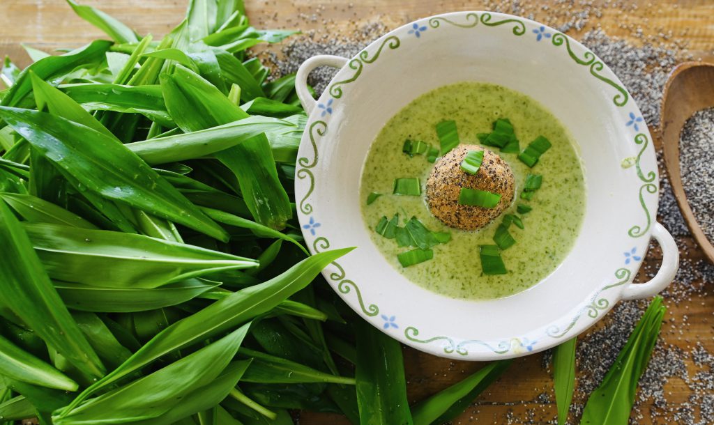 Bärlauchsuppe und Graumohn-Ei