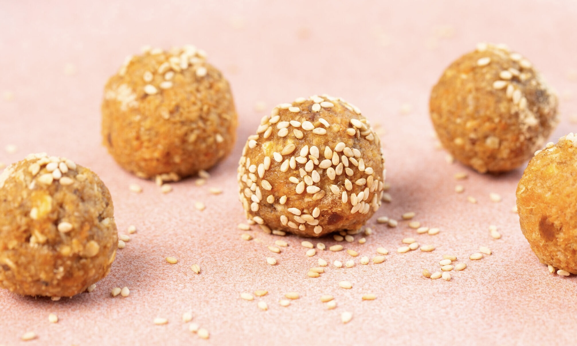Der Geschmack von frischem Karottenkuchen, mit Nüssen und wärmenden Gewürznoten wie Zimt, Kardamom und Kurkuma in kleine Kugeln gepackt.
