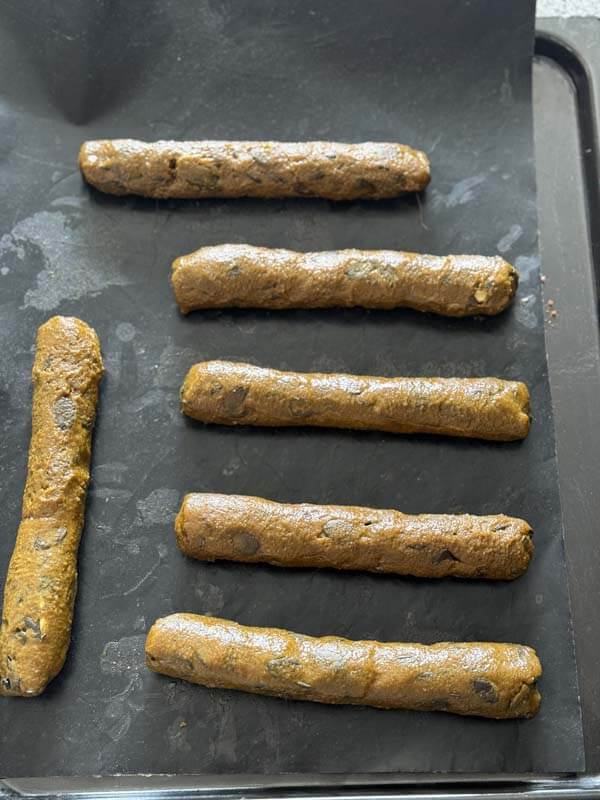 - Zuerst Stränge mit ca. 2-3 cm Durchmesser formen und 15 Minuten bei 170°C backen.