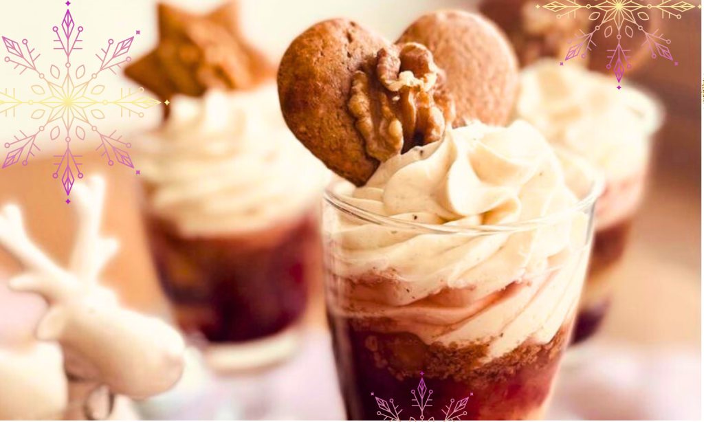 - Das Kompott in Gläser füllen, 1 EL AroniaBIO Fruchtaufstrich oder AroniaBIO Punschsirup (mit oder ohne Rum) darüber gießen, Lebkuchenbrösel drüber streuen. Die Creme mittels Spritzsack in die Gläser füllen. Zum Schluss die gefüllten Gläser mit einem Lebkuchen und Zimtpulver verzieren.