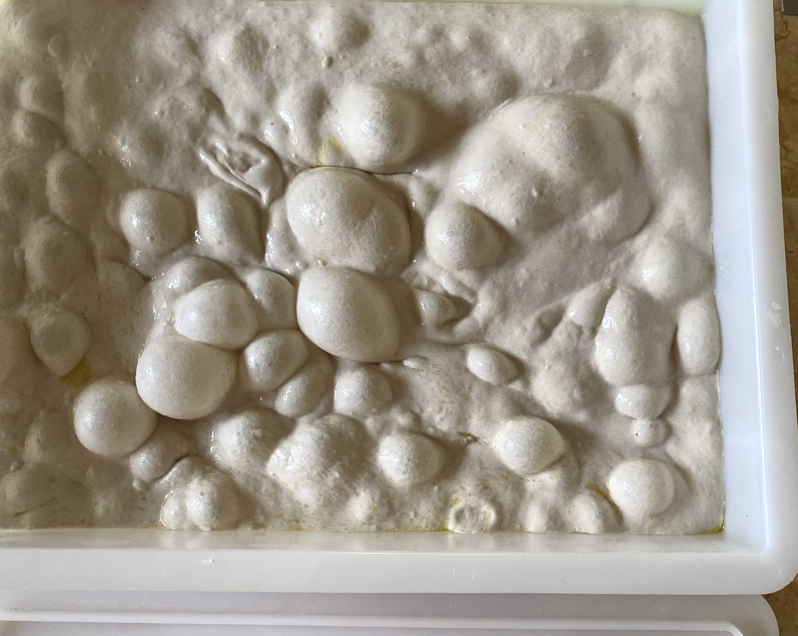 - Teig zugedeckt 3 h gehen lassen. Zwischendurch kann man ihn mal vorsichtig falten.
