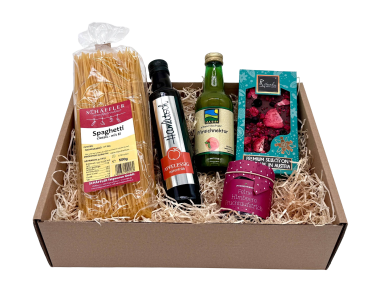In einem edel bedruckten Geschenkkarton, gebettet auf nachhaltiger Holzwolle werden unsere Produkte in liebevoller Handarbeit für Sie eingepackt.