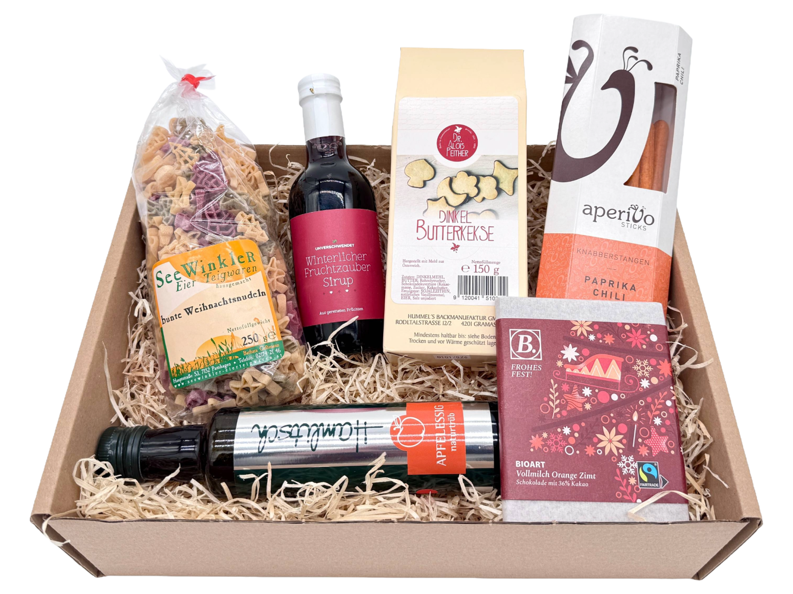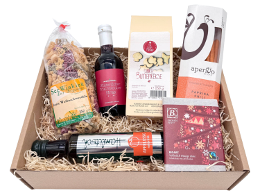 In einem edel bedruckten Geschenkkarton, gebettet auf nachhaltiger Holzwolle werden unsere Produkte in liebevoller Handarbeit für Sie eingepackt.