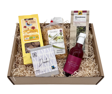 In einem edel bedruckten Geschenkkarton, gebettet auf nachhaltiger Holzwolle werden unsere Produkte in liebevoller Handarbeit für Sie eingepackt.