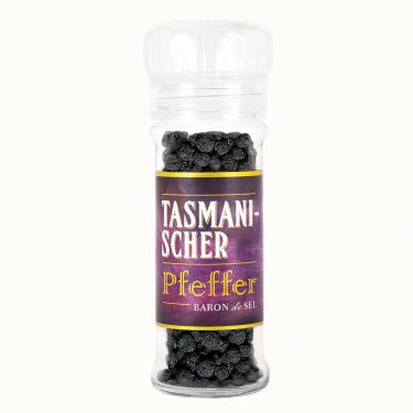 "Als Künstler der feinen Geschmacksnuancen und zarten Farben tanzt der tasmanischer Pfeffer mit seinem süßlich-fruchtigen Geschmack aus der Pfefferreihe. Kunstvoll zaubert er lila Tupfen über helle Speisen und taucht süße Delikatessen in ein ganz neues Licht."