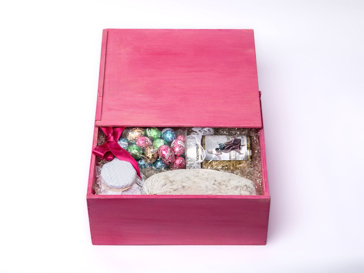 in Holzkassette rosa handbemalt 24 x 16 x 10 cm
