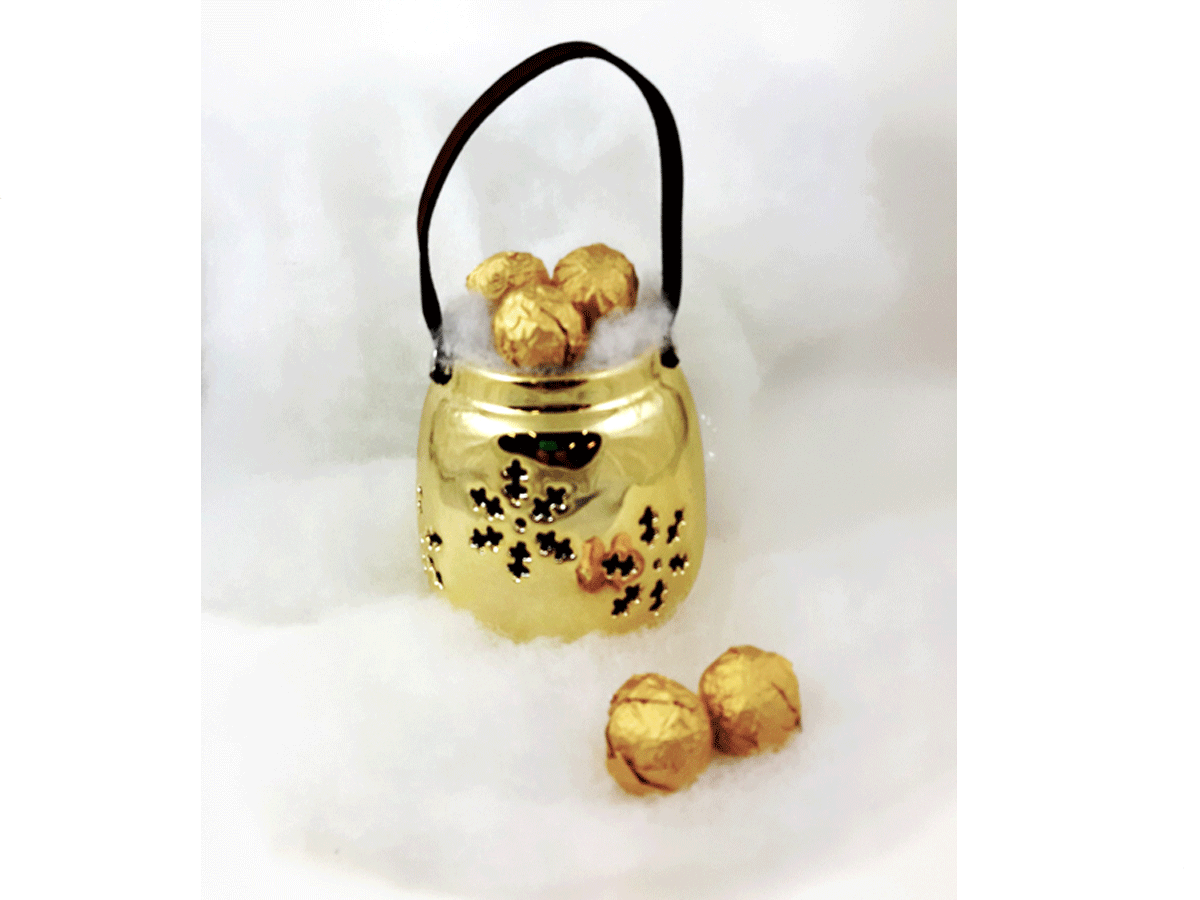 gefüllt mit feinen goldgewickelten Frischpralinen