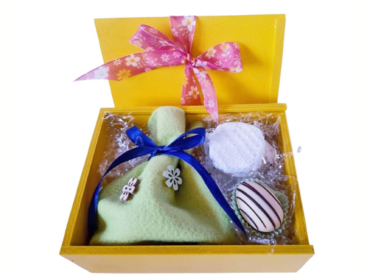 in Holzkassette gelb handbemalt 15 x 12 x 7 cm