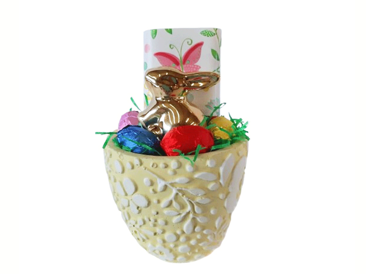 in gelben Terracottaschälchen mit Blumenmotiv Höhe 8 cm