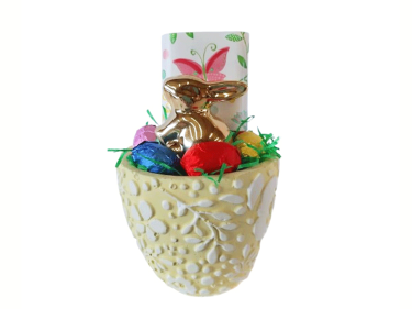 in knitterfreies Cellophan liebevoll verpackt und mit Osterschleife verziert!