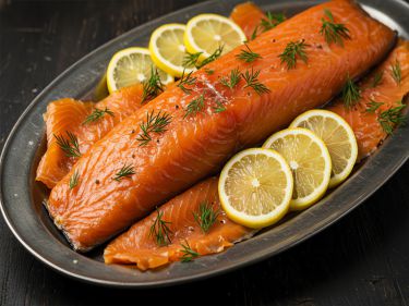 Hochwertige Räucherlachs "Label Rouge"- vorgeschnitten, mild gesalzen und anschließend im altem Lehm-Iglu über offenen Feuer mild & trocken mehrere Tage geräuchert.