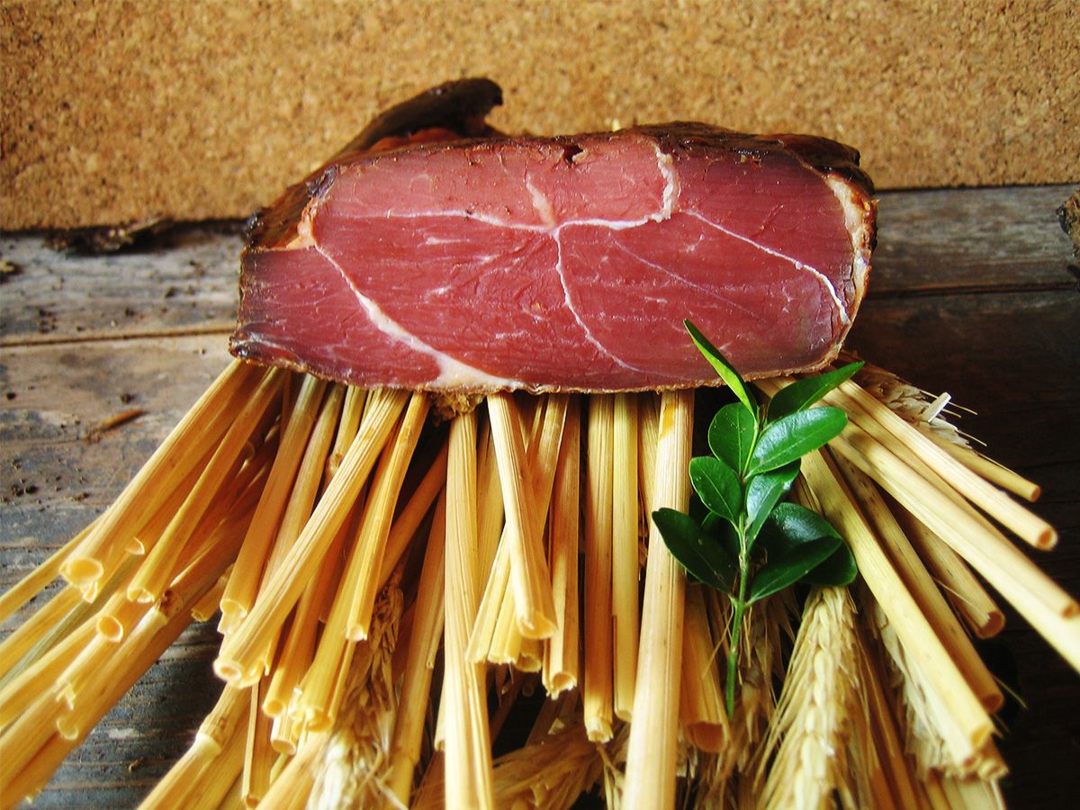 geräuchertes Keulenstück, mager, leicht durchzogen