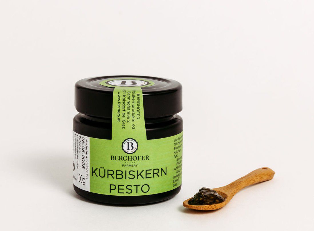 Mit Berghofers Kürbiskernpesto gelingt das Verfeinern von Salaten oder Nudelgerichten immer.