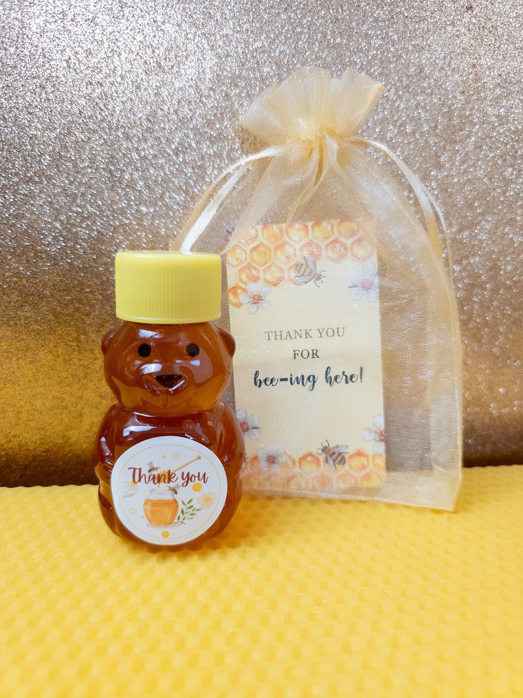 Somit ist das kleine Bärchen ein idealer Glücksbringer der hinzu noch mit feinstem Honig liebevoll befüllt wurde. Ein kleines Kärtchen mit "DANKE DAS DU DA BIST!" ist mit dabei im Tüllsäckchen.