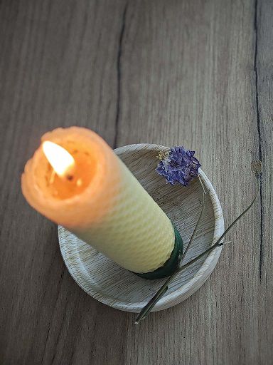 Natürlich kannst du dir auch selber deine ganz eigenen Kerzen kreieren, mit unserem Bienenwachs das hier auch erhältlich ist. Dazu kann man auch etwas Weihrauch, getrocknete Rosenblätter oder Lavendel in das Bienenwachs mit einrollen. (Wachsplatten vor dem eindrehen in einem besonders warmen Raum legen!)