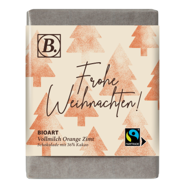 BIOART “Frohe Weihnachten” Vollmilch Orange-Zimt 70g, Fairtrade