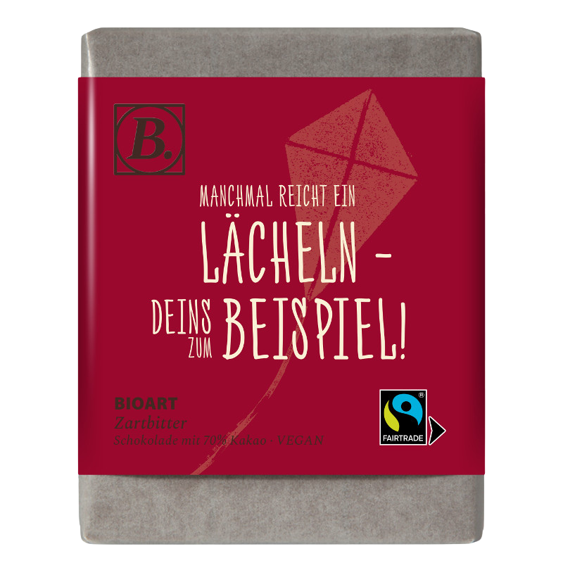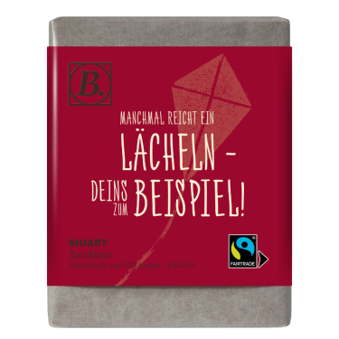 BIOART Schoko “Manchmal reicht ein Lächeln – deins zum Beispiel!” 70g, Zartbitter, Fairtrade