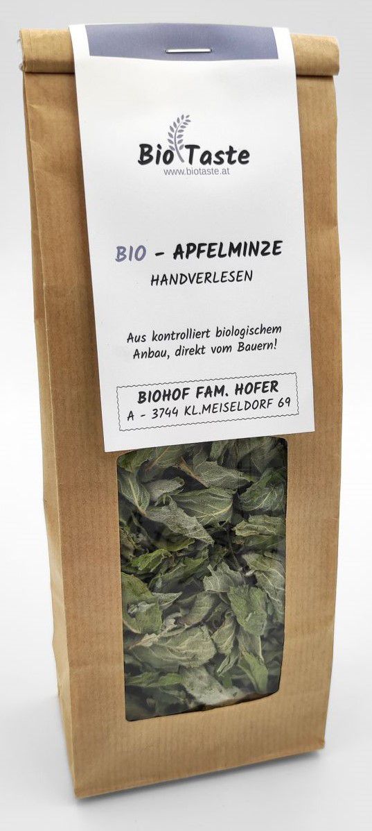 Die Apfelminze eignet sich hervorragend als Tee oder aber als Erfrischungsgetränk an heißen Sommertagen. Durch die schonende Trocknung bleiben die Aromen in den Blättern enthalten und können auch später noch den guten Geschmack hervorbringen. All unsere Kräuter sind handverlesen und verpackt.