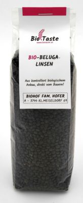 Belugalinsen sind sehr fein im Geschmack und haben ein kräftiges, nussiges Aroma. Da sie beim Kochen nur wenig ihrer Farbe verlieren und ihre Form behalten, eignen sich die bissfesten Linsen ideal als Beilage zu Fisch oder Salaten, als besondere Zutat in Reisgerichten, als Ergänzung zu Getreideprodukten oder als kräftiges Püree oder Brotaufstrich. Verpackungsgröße: 300g Kochzeit: ca. 20 min