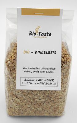 Dinkelreis ist entspelzter, leicht geschliffener Dinkel. Er ist reich an Vitaminen, Mineralstoffen und Ballaststoffen und eignet sich daher hervorragend als Beilage oder Hauptgericht. Er wir wie normaler Reis gekocht.