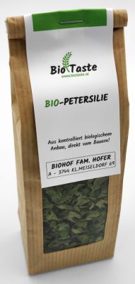 Die Petersilie ist bestens geeignet zum kochen oder würzen. Durch die schonende Trocknung bleiben die Aromen in den Blättern enthalten und können auch später noch den guten Geschmack hervorbringen. All unsere Kräuter sind handverlesen.