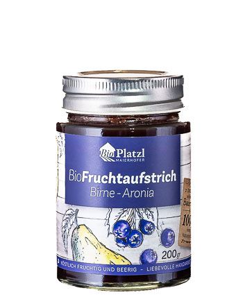 Für unseren fruchtig cremigen Fruchtaufstrich werden nur handverlesene Bio-Birnen und Bio-Aroniabeeren in Handarbeit eingekocht. Der Birnen-Aronia Fruchtaufstrich eignet sich als cremiger Brotaufstrich, ins Joghurt, zur Veredelung von Desserts und süßen Hauptspeisen wie z.B. Kaiserschmarrn u.v.m..
