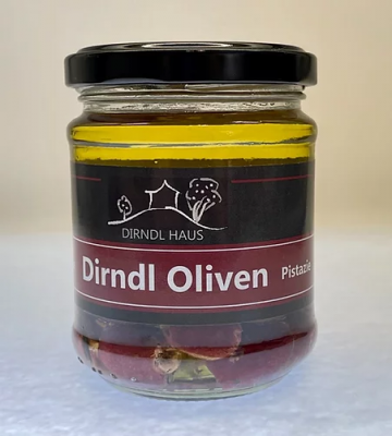 Dirndl Oliven gefüllt mit Pistazie ein im Geschmack unübertreffliches und einmaliges Erlebnis. Ein Produkt, welches es weltweit nur von uns gibt!