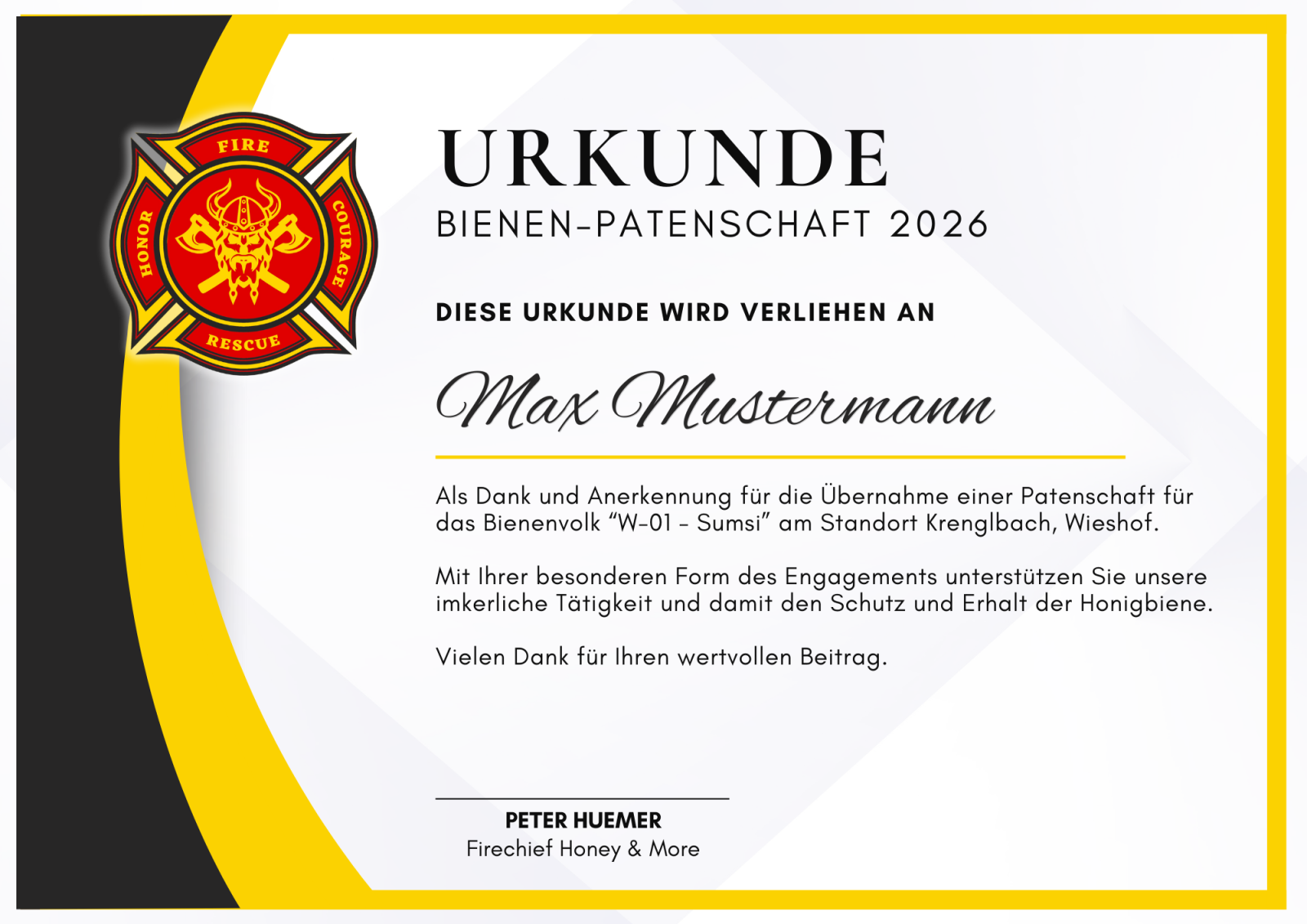 Unterstützen Sie unsere imkerliche Tätigkeit und damit den Schutz und Erhalt der Honigbienen durch Übernahme einer Patenschaft für eines unserer Wirtschaftsvölker.