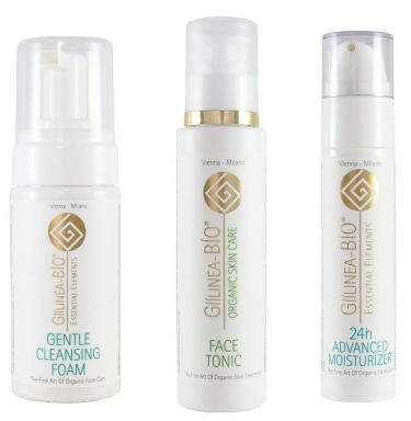 Das vegane Gesichtspflege-Set von GÍÍLINEA BÍO kombiniert entzündungshemmende Kamille, klärende Salicylsäure und feuchtigkeitsspendendes Hyaluron zu einer intensiven Pflege-Routine für ein ebenmäßiges, klareres Hautbild. Ideal für fettige, unreine und zu Entzündungen neigende Haut.