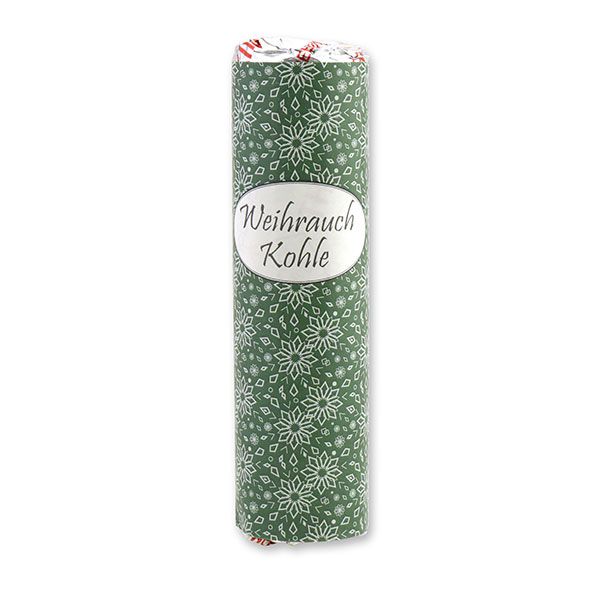 Räucherkohle Ø 33 mm Motiv „Weihnachtszeit“. Gleichmäßige Glut, ideal für Weihrauch. 10 Tabs pro Rolle.