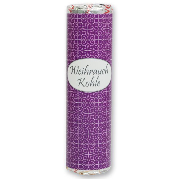 Räucherkohle Ø 40 mm im Motiv „Wohlbefinden“ für traditionelles Räuchern mit Weihrauch und Räucherwerk.