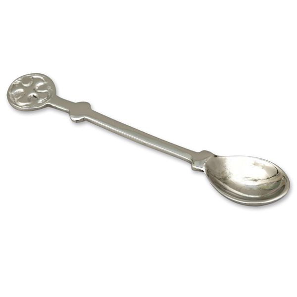 Weihrauchlöffel aus vernickeltem Messing mit 11 cm Länge. Ideal zum sicheren Dosieren und Befüllen von Weihrauchgefäßen.