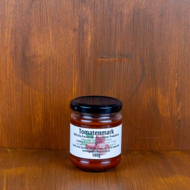 Wir haben diesen Tomatenmark hergestellt aus 100 % Bio-Paradeisern, die wir selbst angebaut haben. Die Ernte war heuer so gut, dass wir uns überlegen mussten, wie wir am besten die Großzügigkeit der guten Mutter Erde annehmen!