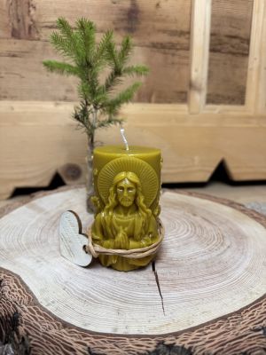 Die Kerze zeigt die Figur Jesus – der Heiland und vereint Symbolkraft mit natürlicher Energie.