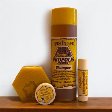 • Propolis Shampoo – Kräftigt und pflegt das Haar, sorgt für Glanz und Frische.