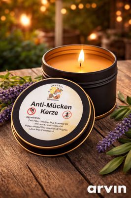 Unsere Anti-Mücken-Kerze wurde mit speziellen ätherischen Ölen gegossen, welche Insekten wie Wespen oder Mücken nicht mögen.