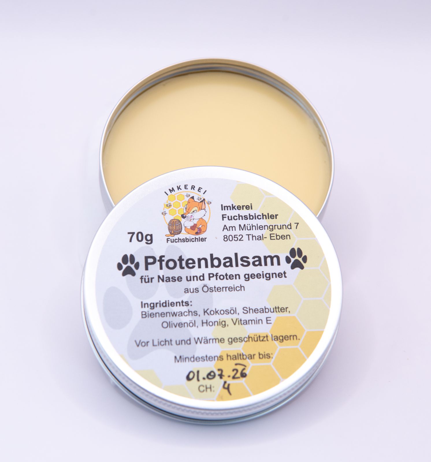 Unser Pfotenbalsam ist sowohl für Hunde und Katzen und kann nicht nur auf die Pfoten, sondern auch auf Ohren und Nase aufgetragen werden. Durch das enthaltene Bienenwachs werden die Poren ein wenig verschlossen, wodurch beispielsweise Salze im Winter schlechter eindringen können. Zusätzlich hat man einen super Pflegeeffekt.