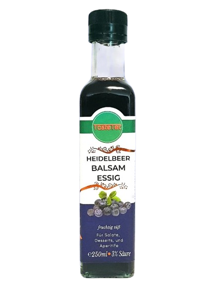 Kleine Beeren, großes Geschmackserlebnis unser TasteTec Heidelbeerbalsamessig Signature Edition. Die köstlichen Heidelbeeren machen unseren Balsamessig zu einem köstlichen Küchenbegleiter.
