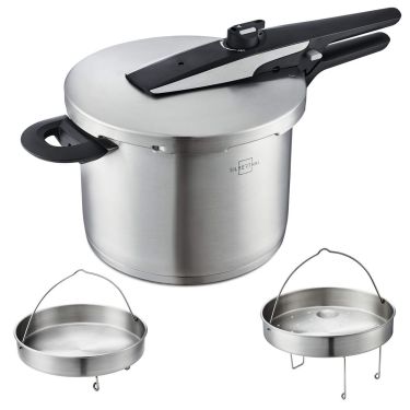 Schnellkochtopf Induktion - 6 Liter - Mit 2 Einsätzen für Dampfgaren