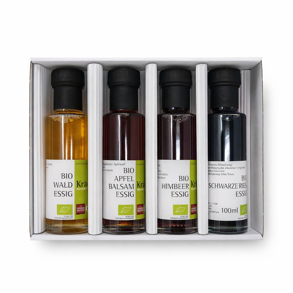 Erleben Sie den reinen Genuss mit unserem Bio 4erlei! Der hochwertige Bio Essig kommt in vier verschiedenen Sorten – Wald, Apfelbalsam, Himbeere und Schwarze Ribisel – für eine geschmackliche Vielfalt. Lassen Sie sich von den natürlichen Aromen verwöhnen und entscheiden Sie sich für eine gesunde und nachhaltige Alternative.