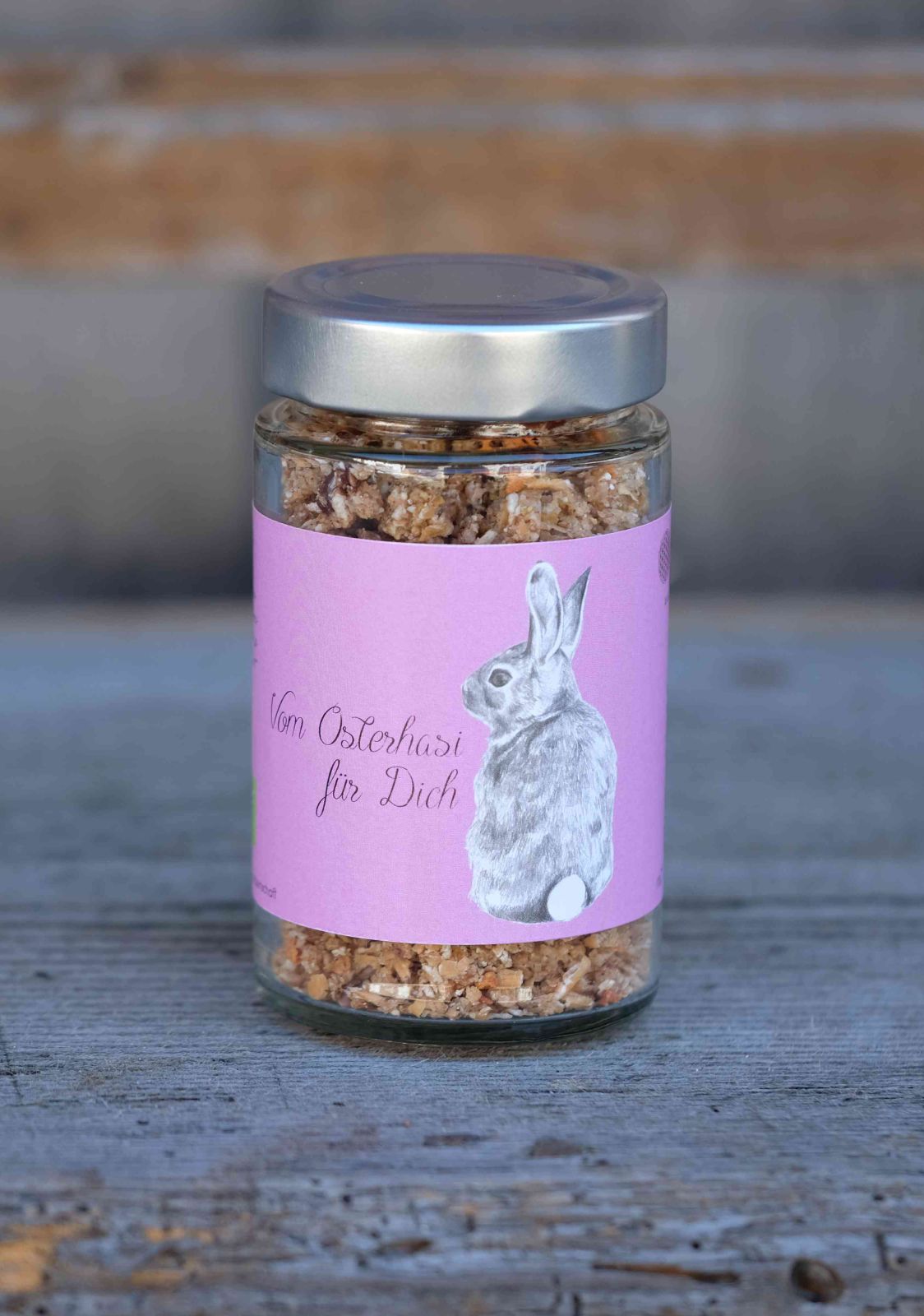 Jetzt wieder saisonal erhältlich: unser mit Liebe handgemachtes Osterhasenmüsli, direkt am Biohof Krammer-Pinter zubereitet.