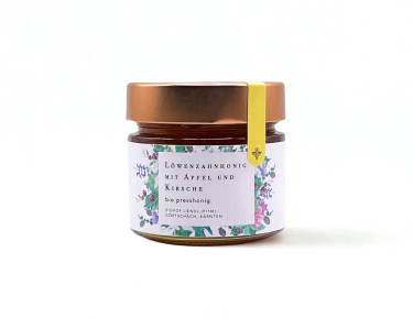 Unser „Löwenzahn, Apfel & Kirsche“ Bio-Presshonig vereint die goldgelbe Leuchtkraft des Löwenzahns mit der milden Süße blühender Apfelbäume und dem feinen Duft wilder Kirschblüten.
