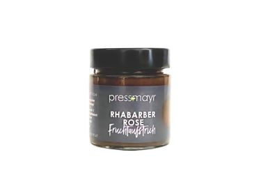 Zutaten: Rhabarber, Zucker, Rosenblüten, Kardamom, Geliermittel: Pektin.