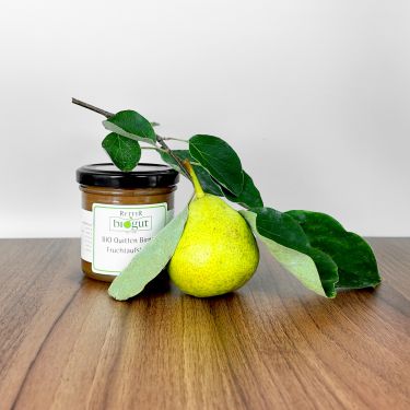 Zutaten: 37% Quitten*, 30% Birnen*, Roh-Rohrzucker*, Zitronensaft*, Rum*, Zimt*, Nelken*, Vanilleschote*, Geliermittel Pektine und Agar Agar