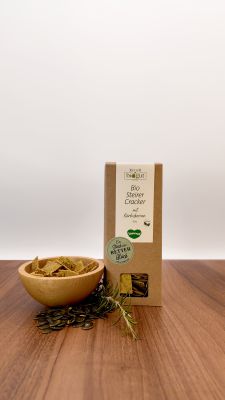 Zutaten: Maisgrieß*, Roggenmehl*, Dinkelmehl*, Margarine*, Wasser, Kürbiskerne*, Salz (Speisesalz, Kaliumjodid, Trennmittel),
