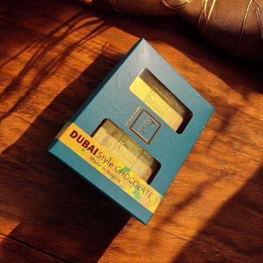 "Verführen Sie Ihre Sinne mit dem unverwechselbaren Geschmack von Ritonka's Knafeh Chocolate - PISTACHIO mit echtem Gold!. Tauchen Sie ein in die Welt des exquisiten Genusses, während Sie in die verführerische Kombination von knusprigem Knafeh, zartschmelzender Schokolade und dem köstlichen Aroma von Pistazien eintauchen. Jeder Bissen ist wie eine Reise in den Orient, voller Geschmack und raffinierter Eleganz. Lassen Sie sich von der Magie Dubais verzaubern und gönnen Sie sich dieses einzigartige Genusserlebnis in Form 4 x 50g (200g) köstlichen Schokoladen."