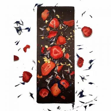 Genießen Sie unsere Gourmet Bitterschokolade Erdbeere, Kornblume, mit echtem Blattgold in einer exquisiten 130g Tafel. Diese Köstlichkeit vereint den intensiven Geschmack von dunkler Schokolade mit der fruchtigen Note von Erdbeeren und einem Hauch von Kornblume. Das Blattgold verleiht der Tafel zudem einen edlen und einzigartigen Touch. Perfekt als besonderes Geschenk oder als delikate Leckerei für sich selbst – diese Schokolade besticht durch ihre feine Kombination aus Aromen und ihre hochwertigen Zutaten. Tauchen Sie ein in die Welt des Genusses und probieren Sie unsere Gourmet Bitterschokolade mit Erdbeere, Kornblume und echtem Blattgold.