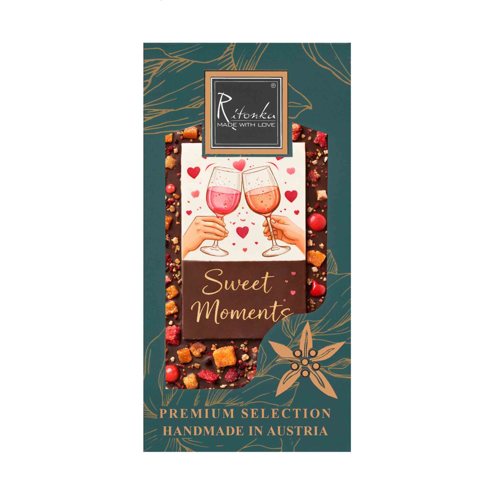 „SWEET MOMENTS“ vereint zart schmelzende Premium-Schokolade mit fruchtigen Beerennoten und knusprigen Crunch-Highlights. Ein verspielter Topping-Mix aus süß, fruchtig und crunchy macht jede Ecke spannend – perfekt zum Teilen, Verschenken oder ganz für dich allein.