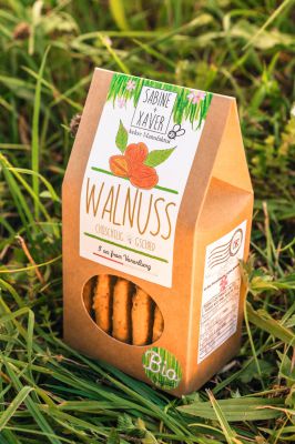 Bio Zutaten: Dinkelmehl, Ländle Butter (Milch), Rohrzucker, Walnusskerne, Kartoffelstärke, Ländle Eier, Ländle Milch und eine Prise Salz.